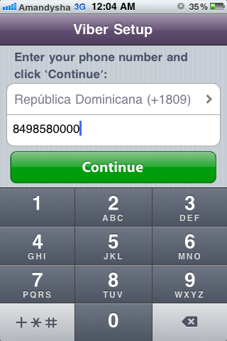 Al instalar la aplicación sólo te preguntará tu número de celular (si tu número es área 809 solo debes introducir los últimos 7 dígitos de tú numero sin el 809). Luego veras especificado tu país y el área 809. Después de este paso te enviarán un mensaje de texto con un código de 4 dígitos para que puedas activar la aplicación.