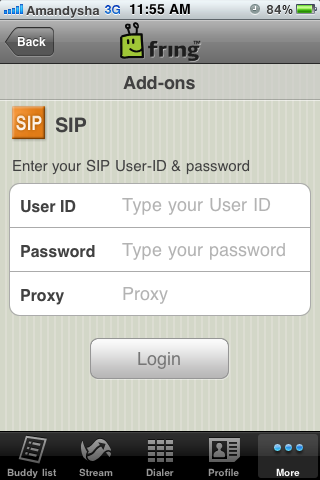 ¿Que es fring? Es una aplicación gratuita de VoIP móvil que te permite hablar gratis usando el acceso a Internet de tu teléfono móvil en vez de consumir minutos de tu plan GSM. Las llamadas con Fring las puedes hacer usando WIFI, GRPS, EDGE, o 3G. La ventaja con Fring es que te permite configurar líneas de teléfono VoIP adicionales (que es lo que vamos a hacer en nuestro caso y le vamos a configurar nuestro número de teléfono de Wind Telecom.